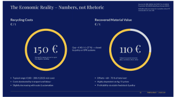 • Average recycling cost: €100–€200 per ton (median: €150)